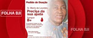 A família da Sra. Maria de Lourdes, que está internada na UTI do Hospital São Vicente de Paulo, em Bom Jesus do Itabapoana, faz um apelo à população por doações de sangue com urgência.