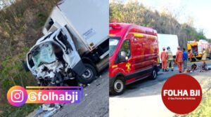 De acordo com informações, o motorista de um caminhão, de 40 anos, ficou preso às ferragens após colidir violentamente na traseira de uma carreta. A cabine do veículo ficou completamente destruída com o impacto.